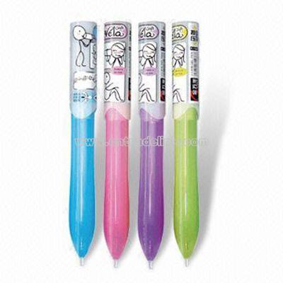 Tip : 0.4mm With rubber handle Refill (ink) colors: blue and black Package: 12 pieces/small box, 144 pieces/big box, 1,728 pieces/carton Size: 47 x 28.5 x 35cm Weight: 10.2kgs