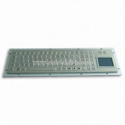 Mechanical data: Key: 81 tactile feel keys in super quality brushed stainless steel Key top style: plain/non-protuberant rectangular keys with laser engraved and etched legends and raised braille on keys are available Touch pad cover: composite More than lifetime 10 million strokes Mutual capacitance sensing: X/Y position sensing resolution: 40 counts/mm X/Y position reporting: relative Output (self-detectable depending on cable): PS2 or USB Tracking speed: maximum 1,016m/second Power supply voltage: 5V DC, ±0.25V Current rating (active mode): 17mA Front plate: super quality brushed stainless steel Short key travel: 0.45mm Switch life: 5 million operations Actuation force: 2.0N for key 14 x 14mm (pressure point) 4.0N for key number 14 x 28mm (pressure point) Lettering: sunk laser legends and characters in high quality ink Actuator/keys materials: stainless steel Gross weight: 2.0kg Dimensions: 392.0 x 110.0mm (front panel), 416.0 x 134.0mm (back panel) Electrical data: Supply voltage: 5V DC ±5% Current rating: 20mA EMC standard: the council EMC directive 89, 336 and EEC EN55022: 1988 + A1:2000 + A2:2003 EN55024: 1988 + A1:2001 + A2:2003 Emission: EN 50081-1 Immunity: EN 50082-1 Lifespan: >5 years Switch contact material: gold-on-gold key switch technology with metal dome PCB Interface: PS2, USB available, RS232 for EPP OS: DOS, Microsoft Windows95, 98, NT, Me, 2000, 2003, XP, Vista, Linux, Unix, Mac OSX Environmental adaptability: Operating temperature: -20 to +60?C Storage temperature: -30 to +70?C Operating RH: 30 to 90% RH Atmospheric pressure: 60 to 106kPa Saline mist: 96 hours, IEC 60512-6 Damp heat test at +40?C: 21 days, IEC 60512-6 Dry heat test at +85?C: 10 days, IEC 60512-6 RoHS compliant, CE and FCC Protection level: IP65 (front panel) Key lifespan: >5 million actuation Touch pad lifespan: >10 million strokes MTBF: >50,000 hours