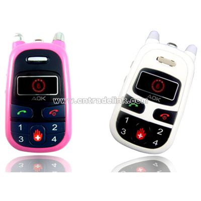 Children's Mobile Phone, mobile phone for school GSM900/1800 or GSM850/1900 0.8"LCD The main function is: 1. One-key passed: Kids can only push one key to contact parents or Teacher 2. Intelligent emergency call: Only push one emergency key, the phone will automatically call 4 emergency number or send message. 3. Limit telephone conversation: The phone can only call or answer the parent's permited phone number. 4. Location Track: You can know where is your kids, in School? In Playground? At home? At grandmother's home? 5. Sound Monitor: Parents can hear the voice surround the kids to check what kid is doing or where is them. 6. Guard against thief function: If some one steal the phone, you can contral the phone even he change the SIM card. 7. Attends class is forbid: At class, the phone will turn off automatically. 8. Message is controlled: No rubbish message. 9. Games is controlled: Game can be played only at the suitable time. 10. Low Radiation: It is safe for children.