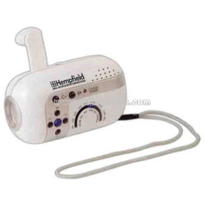 Clip on powerful FM scan radio with incredible quality speakers and retractable antenna featuring personal earphones and bright night light. Requires 2 AAA batteries (not included).