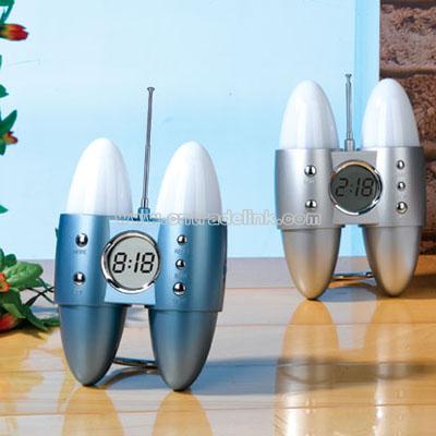 Functions: O FM auto scan radio O Stop watch O Real time clock O Music melody O Snooze function O Calendar O Temperature display O Built-in antenna and speaker * Power: 3.0V DC UM-4 x 2-piece (not included) * Packing: O 1 piece/color box O 36 pieces/carton * Carton size: 45.3 x 34.3 x 39.8cm * Net weight: 8.6kg * Gross weight: 11.8kg