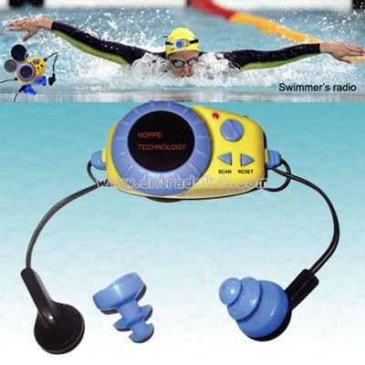 Swimming Radio Funtion: FM auto scan radio Product size: 5.5*3.5*2.5cm QTY: 100PCS/CTN MEAS: 30*46*58CM N. W: 7.9KGS G. W: 8.9KGS
