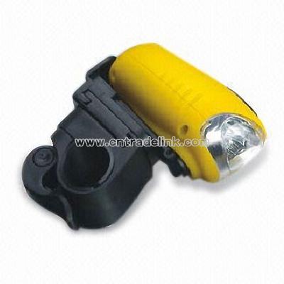 Material: ABS Bulb: 3 LED Battery: 3 x AA batteries (excluded) Switch on/off on body Unique design and convenient to carry Shock and water resistant Suitable for bicycle, motorcycle, outdoor activities and camping Optional inner packing: double blister card or color box CE and RoHS approvals are available