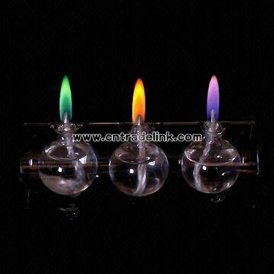 Glass oil lamp Many shapes and sizes for your choice Material: heat-resistant clear glass Glass wick with line Hand-made Adopt modern hi-scientific technology Suitable for the teahouse and home, various party decor, holiday decorations and gifts Color flame oils: red, green, blue, purple, orange, and according to your requirements Product size: 6.5 x 16.5cm Capacity: 36ml (1.5oz) x 3 Burning time: approx. 2 hours
