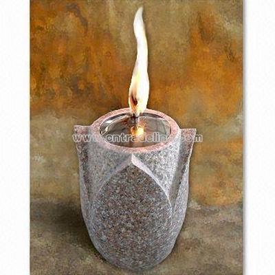 Granite oil lamp Various sizes and colors are available Granite outer shell, stainless steel cover with flower patterns, oil pot and cotton lamp wick Size (D x H): 15 x 22cm Weight: 9kg