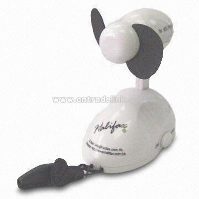 Mini fan with 8,000rpm speed Adjustable fan strength Power supply: 5V DC directly from the USB port Low noise operation Less heat operation and ≤500mA electricity Safe and soft nylon fan blades Power saving design Provides cool air while working Warranty period: six months Compatible with PCs, Notebook PCs, and PDAs Can be used as gift or promotional item Logo printing services are available