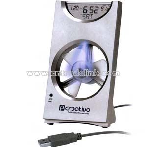Ionic air fan with thermo alarm clock. Digital calendar alarm clock with temperature display. Air freshener continuously generates negative ions to eliminate odor and dust, making the working area clean and fresh. It's a personal healthcare device. Powered by battery or USB cable (USB cable included).Requires 2 AA batteries (not included). 50pcs/34lbs. Size: 3 1/2" x 6 1/2" x 2 3/8"