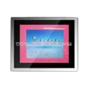 digital photo frame with 8" TFT LCD display screen. 800 x 600 resolution. Displays photos, plays music and movies, shows time and calendar WiFi online without wire. It can be connected with many computers in LAN to share the pictures, music and movies stored in your PC. Built in mini speaker, stereo audio output, able to connect with earphone. Supports CF/MS/SD/MMC/XD cards. USB connection used to upload, download, delete files via computer directly. Size: 8
