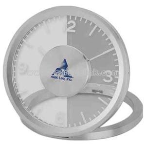 Multifunction clock. One color silkscreen. Material: ABS Color: Black, Blue, Brown, Gold, Gray, Green, Maroon, Navy, Orange, Purple, Red, Royal, White, Yellow Size: 3" x 3" x 1.5"
