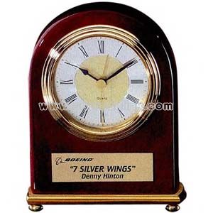 Piano Finish Arch Top Desk Clock with Brass Tim. Material: Wood Size: 7 3/4" H