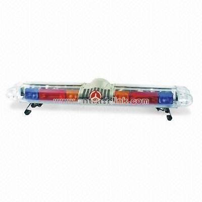 Power: 78W Voltage: 12 or 24V DC Colors: clear cover, red, blue and yellow LED inside Installation: fixed by clasp Size: 1,200 x 330 x 173mm Accessories: 4 longer strobe light + 8 square light + 2 alloy light and 4 U type strobe light Net weight: 17.5kg