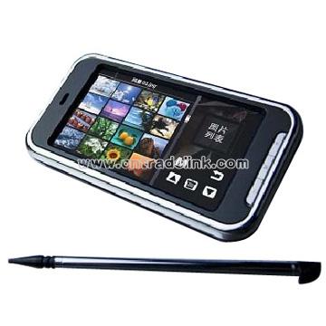 1.3.0inch 260K TFT LCD screen (16: 9), 400*240 pixel, WQVGA displaying; 2. Touch screen navigation 3. Multi formats support: DiVx/RM/RMVB/AVI/MP3/WMA/WAV etc.; 4. Voice digital recording from Mic. Or FM radio; 5. Build-in FM radio; 6. Build-in Stereo loudspeakers; 7. Multi-languages Selection; 8. Supporting pictures screen saver; 9. Electronic album and picture browser; 10. Built-in rechargeable Lithium battery; 12. Telephone book & Electronic book function; 13. Support TF Card, Max. To 4GB; 14. Size: 90mm(L)*55mm(W)*14mm(H); 15. Weight: 70g; 16. USB2.0; 17. Record sample rate: 8KHz; 18. Recording format: WAV(32Kbps), ACT(8Kbps); 19. Recording time: 72 hours (ACT, 256M Memory); 20. SNR: 90dB; 21. Output Frequency Range: 20Hz-20KHz; 22. Operation System: Windows 2K/XP/Vista, Mac OS 10, Linux 2.4.2 and above.