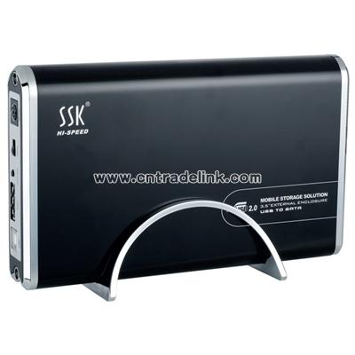 3.5' IDE/SATA/eSATA HDD Enclosure 1) Model No.: SHE001/SHE002/SHE003 2) IC: JM20339 3) Rate: USB 2.0, 480Mbp/s / eSATA: 3Gbp/s 4) Capacity: 5-1000GB 5) Suitable for hard disk type: 3.5" IDE / SATA Hard disk 6) External Interface: USB2.0/eSATA 7) Power supply: AC/DC adapter, 2.0A 8) Materials: Aluminum and MG alloy