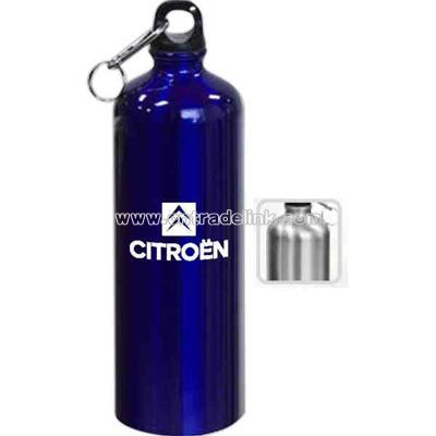 32 oz Aluminum Sports Bottle. BPA free. Carabiner clip attached. 32 oz Aluminum Sports Bottle. BPA free reusable aluminum water bottle. Leakproof screw on lid. Carabiner clip attached.10 1/2" x 3" diameter bottle size. Material: Aluminum Color: Blue, Silver Minimum Production Time: 7 day(s) Size: 32 oz