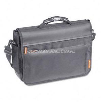 Samsill? Business Casual Messenger Bag, Nylon, 18 x 5 x 12, Gray - 39001 Keep your computer with you, even if you have a mobile lifestyle. Messenger-style computer bag has protective laptop compartment with Velcro? security strap. To keep your documents and business accessories safe and organized, the bag features durable front buckle closure and side lifter cell phone pocket, two interior file folder pockets and hidden zippered mesh water bottle pocket, scratch free media pocket for four CD’s and a flash drive, and accessory panel for digital accessories, business cards, pens and keys. Front and back outside zipper pockets and adjustable padded shoulder strap. Light-colored lining to help find items fast. Includes one laptop computer case, one removable shoulder strap. Width 18 in Depth 5 in Height 12 in Closure Buckle, Velcro? Interior Color Black, Orange Lining Padded Handle Color Black