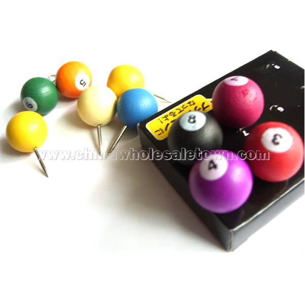 The balls are made of wood. It's a little bigger than normal thumbtack (see picture 3) Size: 1.5cm in diameter of bal weight:0.025kg Material: wood, 100% safe non-toxic environmentally friendly paint