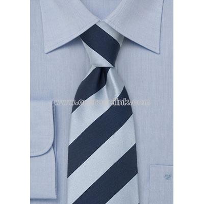 The wide light blue and navy blue stripes make this an all-time favorite. If you are looking for a trendy business tie, this will be the right necktie for you. A stunning looking necktie that matches exceptionally well with light gray or dark blue suits. Handmade silk tie by Parsley Luxury Neckwear. Length: 58", Width: 3.5"