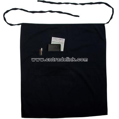 Bistro apron navy blue 65 / 35 poly / cotton twill with an 8" x 8" side mounted pocket and pencil pocket. Ties are same color as apron material. Apron measures 28 1/2" x 26 3/4". Item Weight 0.4 lbs / each Item Dimensions ( L x W ) 30 x 27 in. 76.2 x 68.58 cm.