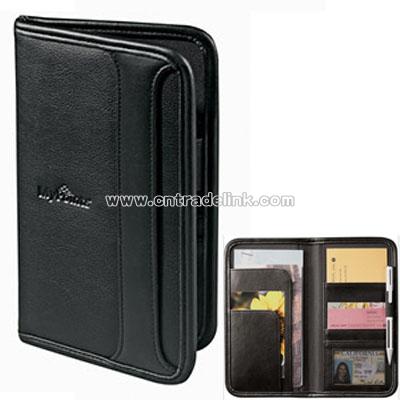 A classic gift for your traveling sales team. Open front pocket with interior pocket for travel documents and currency. Elastic pen loop. Mesh ID pocket. Price includes one location Debossed imprint centered on front pocket with spine at left, 5"H x 1-1/2"L. Please note: Other imprint methods and locations may be available for this item. Please call for details. Items pictured do not necessarily depict the standard imprint method. Product Material(s): UltraHyde Product Dimensions:9-1/4"H x 3/4"W x 5-1/4"L