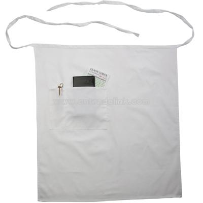 Bistro apron white 65 / 35 poly / cotton twill with an 8" x 8" side mounted pocket and pencil pocket. Ties are same color as apron material. Apron measures 28 1/2" x 26 3/4". Item Weight 0.4 lbs / each Item Dimensions ( L x W ) 30 x 27 in. 76.2 x 68.58 cm.