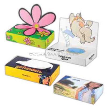 Box of 50, 2 ply virgin tissues. Size: 7 1/2" x 4 1/2" x 1 3/8"