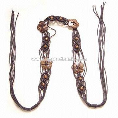 Beaded Belt, Made of Wax Rope, Available in Size of 2 x 4.5cm Material: wax rope With wooden beads Size: 2 x 4.5cm