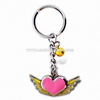 Metal keychain Winged heart design Good-quality finish Easily customizable Different platings available Totally unique designs Enameling/printing/engraving available