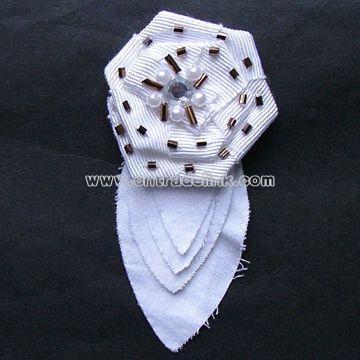 Materials: fabric, grosgrain tape, bugles, glass beads and imitation pearl Available in various colors, sizes and patterns Can stick barcodes as per customer's request Small orders are welcome