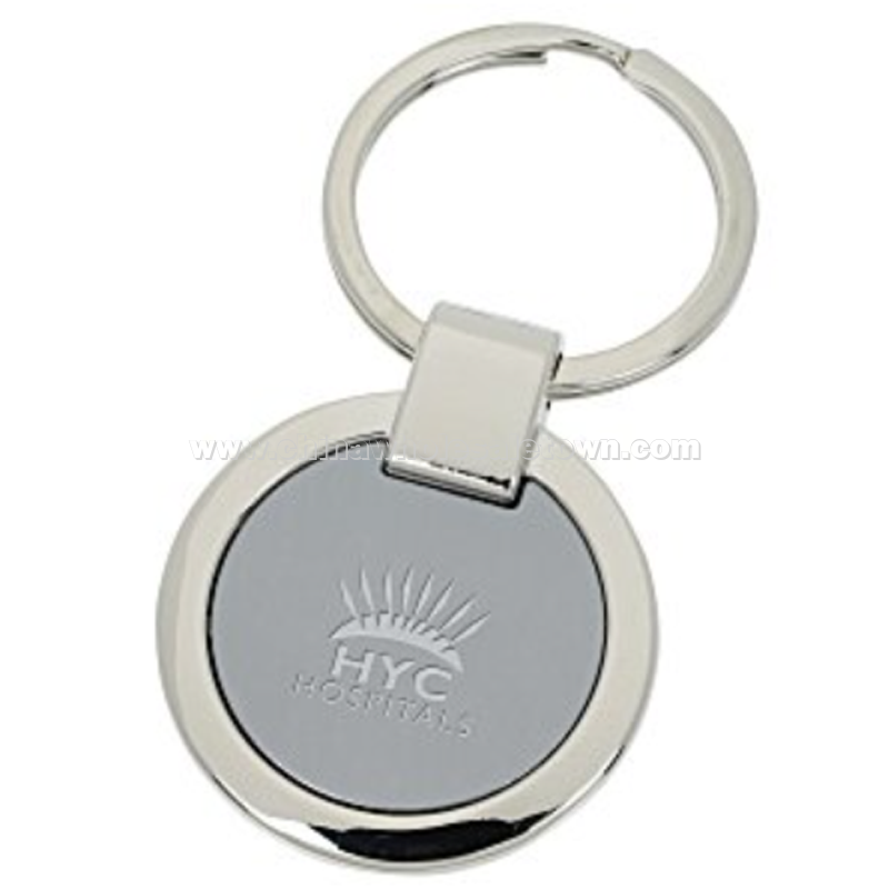 Exceptional two-tone design of this customized key chain stands out against any background. Material: Metal Metal split ring attachment Size: 2-3/4" x 1-3/8" x 5/16"