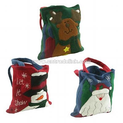 These Holiday party bags are perfect to use for special events and corporate promotions. Festive, fun and at a price that can't be beat these bags are great. Assorted designs. 7?″ wide and 8?″ tall with a 5″ tall handle. Made of felt.