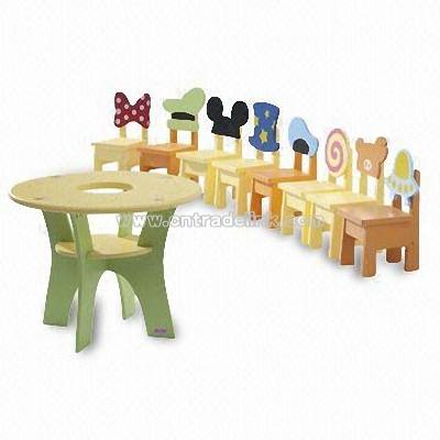 Chair: Materials: wood and MDF Size: 23.7 x 29.2 x 45cm Packing: Gross weight: 5kg Round table: Materials: wood and MDF Size: 70 x 70 x 50cm Packing: Gross weight: 13kg