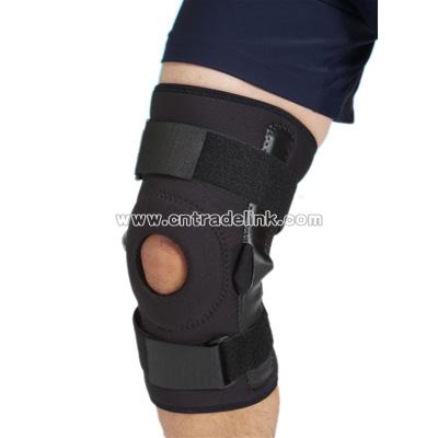 Knee Support Material: Neoprene, Nylon, Hinge Size: S, M, L Feature & Function: Neoprene knee support with metallic hinges with polycentric articulation and upper and lower adjustment straps. Effects Thermocompression, relief, protection, stability, permanent centring of the kneecap. Recommended uses Light contusions. Arthrosis and arthritis. Post-surgical treatments. Rehabilitation. Capsuloligamentous and mediolateral instabilities. Steel support hinges help prevent hyper-extension and provide side-to-side support. Soft neoprene for stabilizing compression and therapeutic warmth. Two adjustable straps.