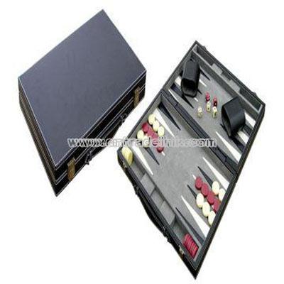 Leather Backgammon Set,Backgammon Case Material: Leather Exterior Color:Black,Burgundy,Brown ,Blue,etc Grey and White Suede Interior With Leather Handle Include 2 Dice Cup,30pcs Chips Dimension: 3 Size available