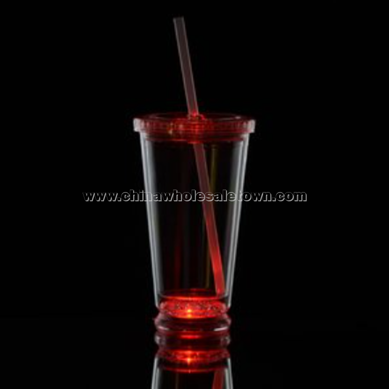Light up your event with these light-up LED tumblers. The LED bulbs blinking and chasing around the base will catch everyone's attention. Material: Single walled acrylic LED lights in base of tumbler Features seven steady light colors or color-changing light Includes: two replaceable button-cell batteries Capacity: 7 oz