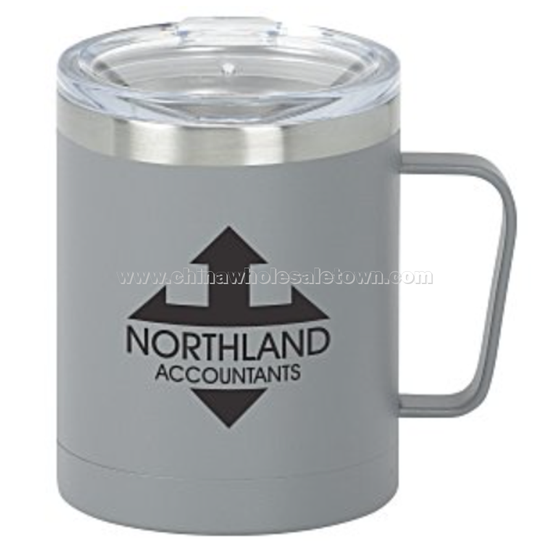 This mug makes you feel all comfy and cozy. Tumbler is vacuum insulated for increased temperature retention. Mug: Double-wall stainless steel Lid: Acrylic Handle: Stainless steel Insulation: Vacuum Closure: Push-on lid with sip through drink opening Angled handle Finish: Powder coat Capacity: 12 oz