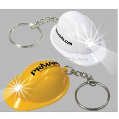 Light up mini hard hat design keychain with LED light. Color: White, Yellow Size: 1 1/4" x 2 7/8"