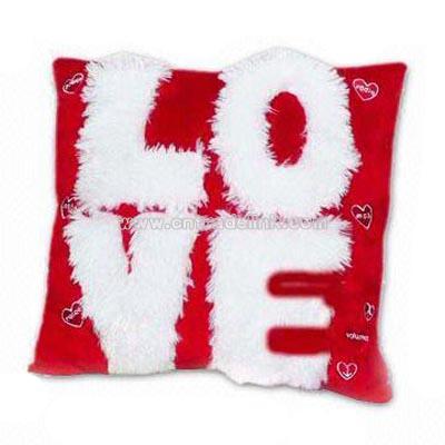 Soft velboa plush for square cushions and longer big bird plush for the LOVE wordings FM scan radio control buttons on the surface of the square cushions Flashing LED lights under the plush LOVE wordings with 3 colors change Operated by 4 x AA batteries Battery compartment and 3.5mm jack also in the inside pocket of the cushion Can be a speaker for MP3 or other musical player Valentine's day item Suitable for promotional and gifts purposes