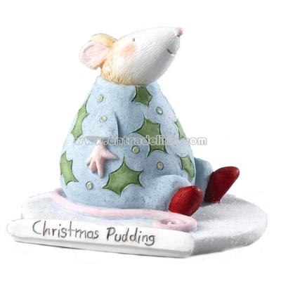 Each Christmas Pudding Figurine is made from resin and has been hand painted with illustrative colours which echoes Anita's water colour illustrations. Christmas Pudding comes packaged in a card box with decorative cuff. Dimensions: Height 4.5cm