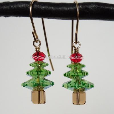 Here are some lovely sparkly Christmas trees to decorate your ears this holiday season! They are made from crystals, with light green tree, cheery red ornament topper, and crystal copper tree trunk. Very cute.The trees are about 1/2" tall and total earring length is 1.25" from the top of the earwire.