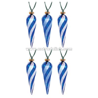 The Color-Changing LED Icicle Ornalite Set gives you worry-free holiday decorating. These color-changing ornament lights add just the right holiday touch as they display colors in a rainbow of radiance to celebrate festive times. These color-changing LED strands have an energy-saving battery pack that stays on for 8 hours and off for 16. Accented with blue and white swirls, this set of ornament lights set the holiday mood. Uses 2 D batteries (not included). Ornament lights 2 Strings of 6 LED lights Blue and white icicle design with color-changing liquid inside Display colors in a rainbow of radiance Saves energy - uses almost 80% less electricity than incandescent lights. Lasts up to 200,000 hours Cool to the touch Safe for children and pets Green wire blends in with your landscaping or Christmas tree. No extension cords needed. Energy saving battery pack Automatic timer, on for 6 hours, off for 18 Uses 2 D batteries (not included). Measures 12'L 12" Spacing