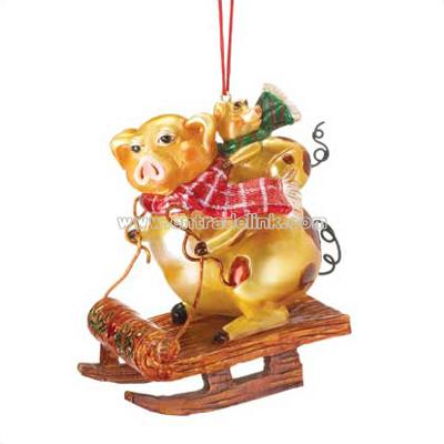 A pair of pigs sled merrily along in this whimsical ornament, sure to delight animal lovers everywhere! Polyresin. 3 3/8" x 1 7/8" x 3 1/4" high.