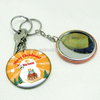 Customer's logo, colors, sizes and shapes available OEM are welcome. Silk screen, pad printing, offset printing, epoxy available. Made of Tinplate with 4 color Offset printing paper, film and mirror, key-chain. Size: Dia. 43mm. Packing: Each piece in one polybag