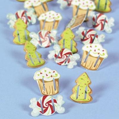 36 Candy Cane Brads. Includes red striped candy canes: 18 with silver glitter, 18 with white stripes and no glitter. Metal (36 pcs.) 1 1/8" x 1/2" head.