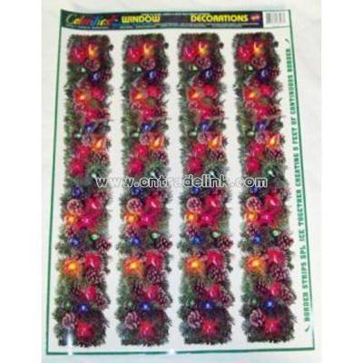 Christmas Garland Window Decoration Cling. Clings to glass, plastic and most nonporous surfaces. Reusable and two sided. 17" X 12". Border strips create 5 plus feet of continuous border!