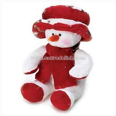 Chubby-faced snowman peeks shyly beneath the brim of his floppy winter hat, ready to bring a smile to any snowy day. Plush figure adds delightful wintertime whimsy all year round! Polyester fabric. /!\ WARNING: CHOKING HAZARD - Small parts. Not for children under 3 years. 6 5/8" x 6 1/4" x 8 5/8" high.
