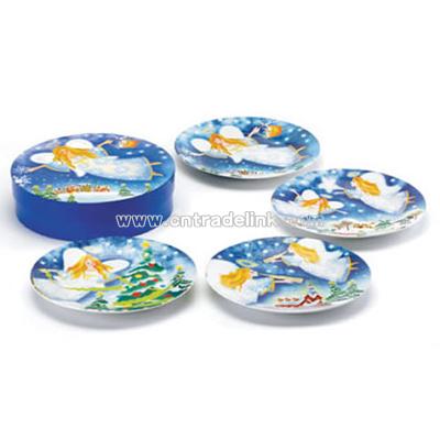 Your favorite Christmas confection will taste even more heavenly when served on one of these glorious dessert plates! Set comes packaged in its own elegant gift box. Microwave and dishwasher safe. Porcelain. 8 1/4" x 8 1/4" high.