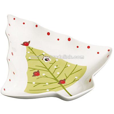 A Christmassy dish to fill with seasonal treats for all to share. L30.5 x W30.5cm. Dishwasher safe Material :Bone china