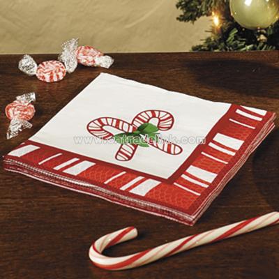 Candy Cane Cocktail Napkins. These two-ply paper cocktail napkins with candy cane and holly berry designs will add a touch of merriment to your Christmas tableware. These classical candy napkins coordinate well with a variety of festive decorations! Have them handy for guests at your holiday parties! (50 pcs. per unit) 6 1/2"