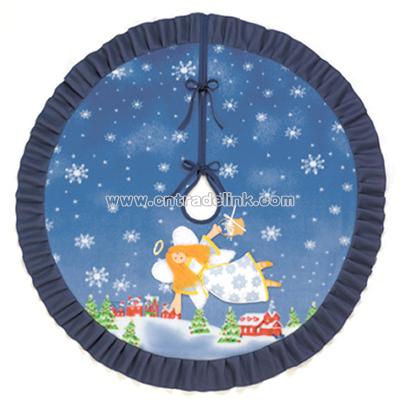 A delightful plush angel flies against a snowy village background, bringing Christmas cheer to all below! This heavenly scene is the perfect way to wrap your tree this holiday season. The generous 40" fabric skirt with ruffle trim is the most divine accent for your tree! Polyester. 40" x 40" high.