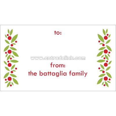 A bright holly wreath makes this chic gift tag sparkle. Type:Gift Tags Size:2 x 3 1/2 inches Paper:110lb uncoated cardstock 30% post-consumer waste